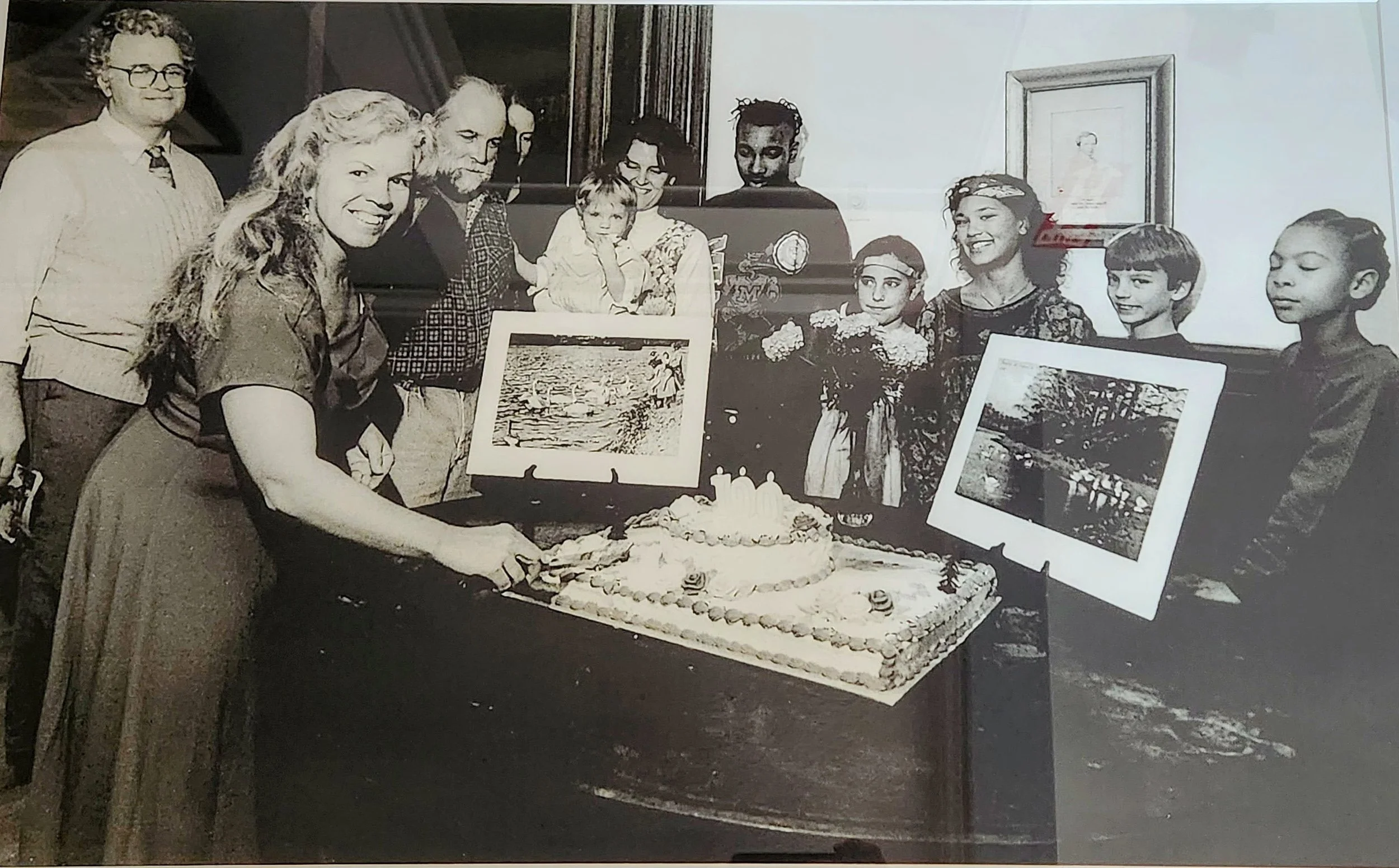 Christine Cooper, Charlie Hauck, Stephen Baird, and Gerry Wright established Friends of Jamaica Pond in 1983 under the initial name of The Jamaica Pond Project. From left to right, Charlie, Christine, and Gerry can be seen here celebrating the 100th anniversary of Jamaica Pond Park in 1991.